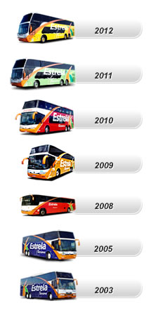Paradiso Low Driver, 39 lugares, leito turismo. Equipado com: ar condicionado, calefação, sistema de áudio e vídeo (03 monitores de vídeo, dvd / cd player e microfone), geladeira, cafeteira elétrica e toalete. Opcional: mesa de jogos.